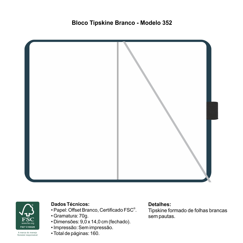 Bloco Tipskine LA - Lagos. Material sintético, acabamento encadernado, suporte para caneta e fecho elástico preto.